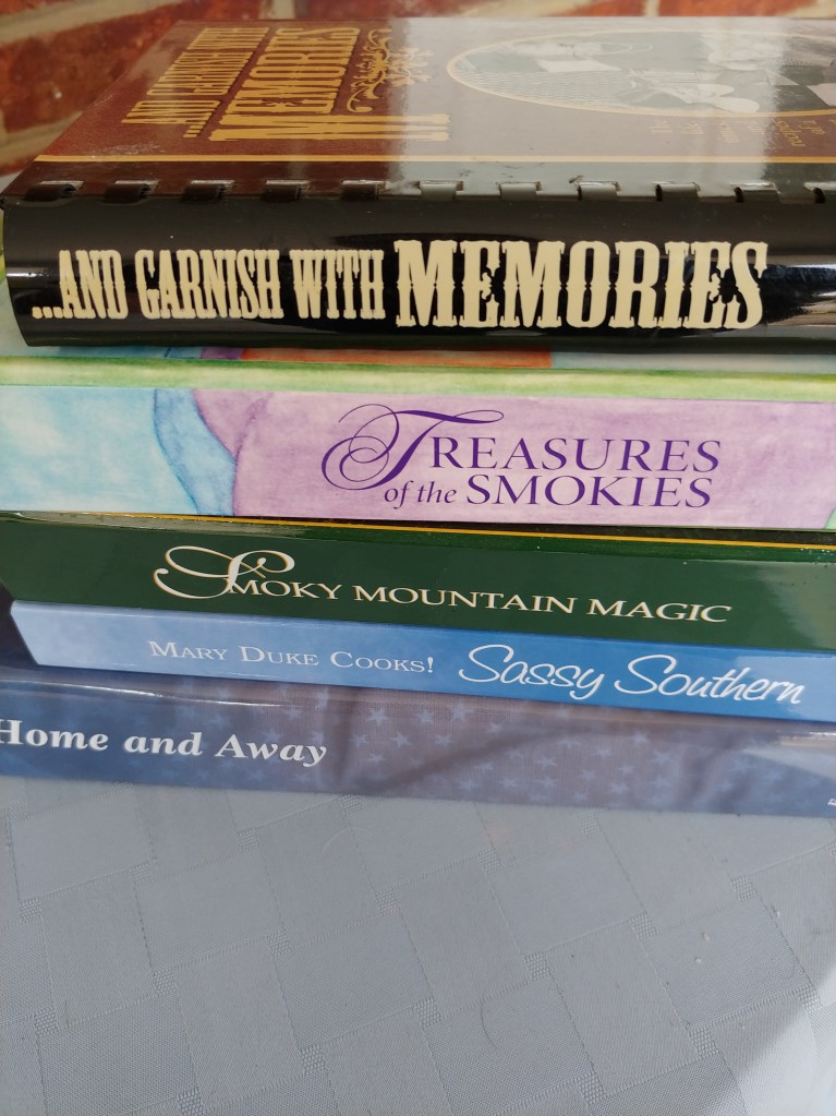 Treasurers of the Smokies and Smoky Mountain Magic, both pictured above, are cookbooks the Junior League of Johnson City published.  The Junior League of Johnson City still has a few copies of Treasures of the Smokies.   Here’s a link for an easy purchase: http://www.juniorleagueofjc.com/funddevelopment/treasures-of-the-smokies-cookbook/